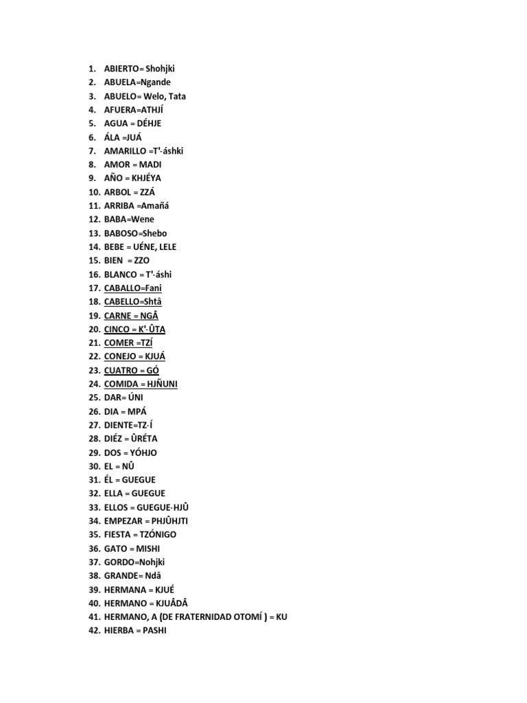 Ma Mpe pa Monda ko ma hñä. Quilón No corra tu lengua más que tu. 40 palabras en otomi y su significado en español Asked by wiki 12062021 in Castellano viewed by 29 People 20 palabras en otomi y su significado en español.