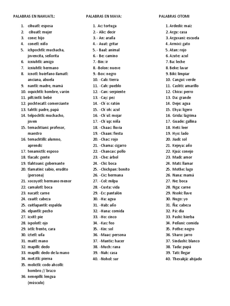 40 Palabras En Otomi Y Su Significado En Español