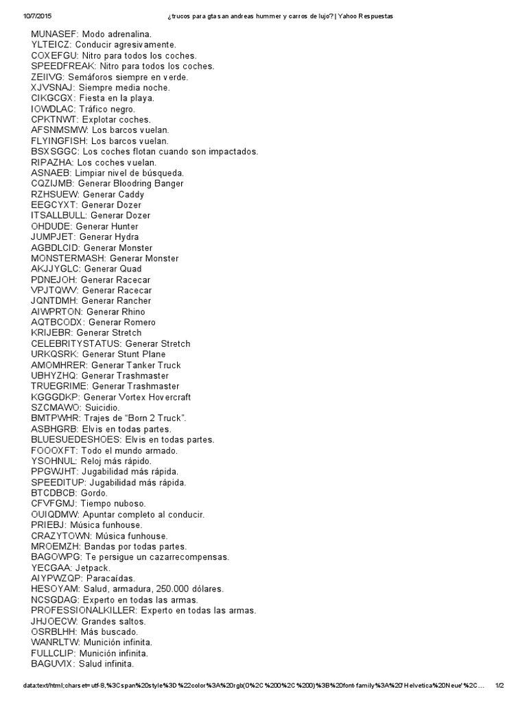 Trucos Para Gta San Andreas Hummer Y Carros De Lujo Yahoo Respuestas Pdf Ocio Deportes