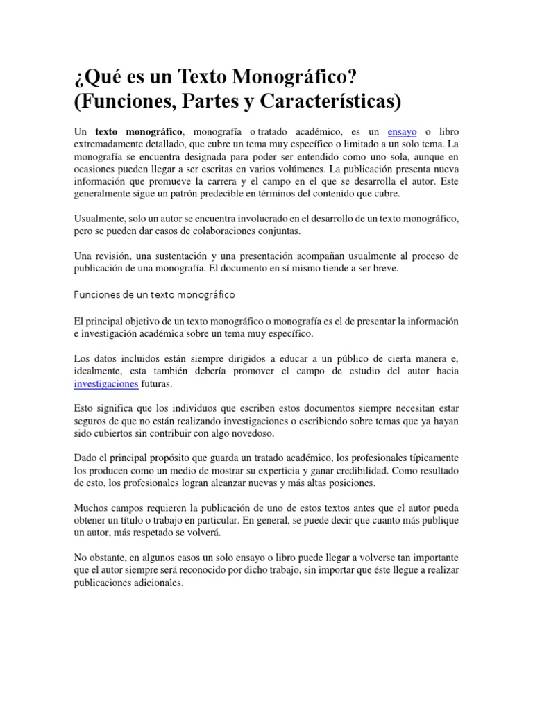 Cual Es La Funcion Del Texto Monografico